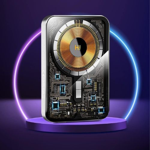 La scocca trasparente con circuito a vista non è solo bella: mostra anche quanta carica resta, in tempo reale.